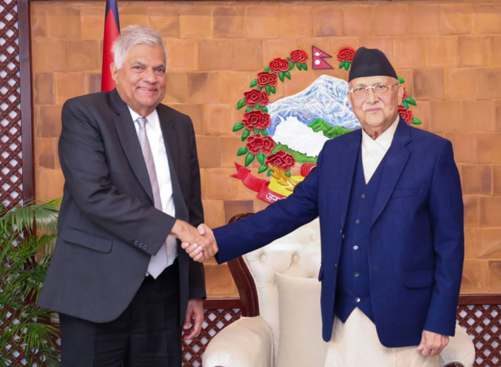 Former Sri Lankan President Ranil Wickremesinghe met Nepalese Prime Minister KP Sharma Oli on Thursday (02) at the Prime Minister’s residence in Baluwatar.