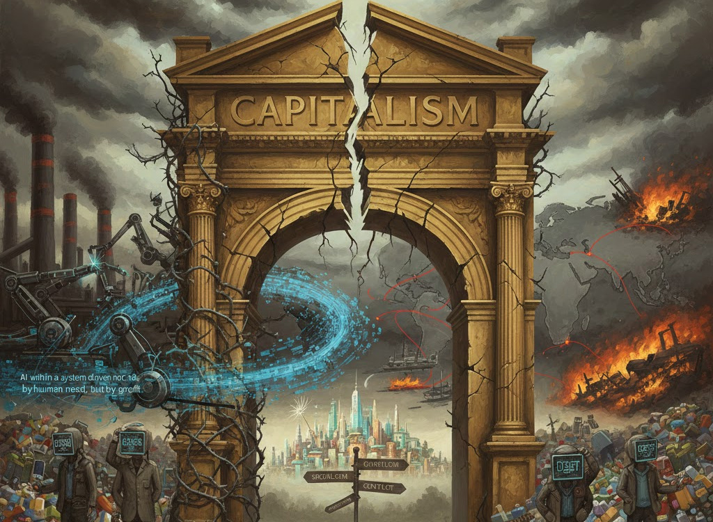 The contemporary world stands at the intersection of two historic crises. The first arises from the internal contradictions of capital accumulation. The second emerges from the rapid expansion of artificial intelligence (AI) within a system driven not by human need, but by profit.