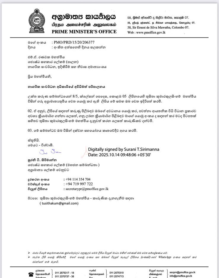 Thusitha Kumara Kulasingham, a resident of Clayson Place near the site of the proposed project, lodged written complaints with the president and the PM against the conduct of the UDA officials.