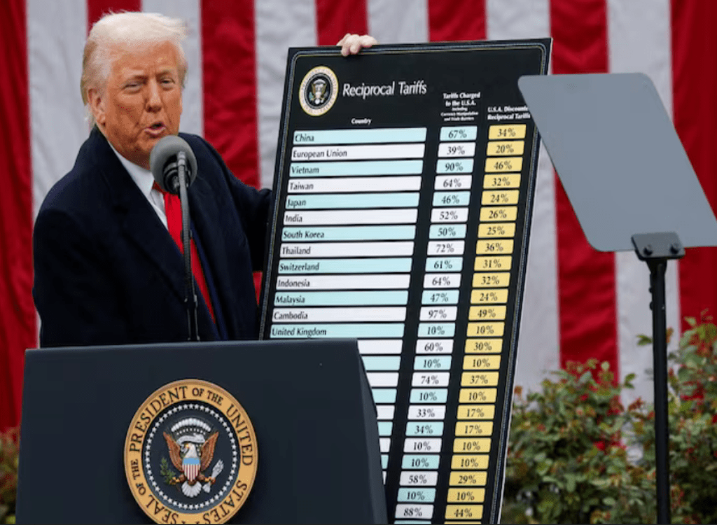 US President Donald Trump has imposed a 44% tariff on Sri Lanka, citing what he called a “reciprocal discounted tax” based on trade imbalances.