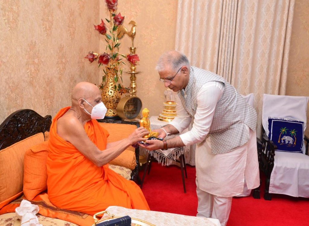 The High Commissioner of India to Sri Lanka, Santosh Jha, paid respects to Most Venerable Thibbatuwawe Sri Siddhartha Sumangala Mahanayake Thero of Malwatte Chapter and Most Venerable Warakagoda Sri Gnanarathana Mahanayake Thero of Asgiriya Chapter in Kandy on May 16.